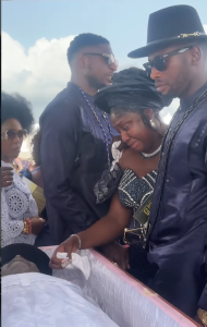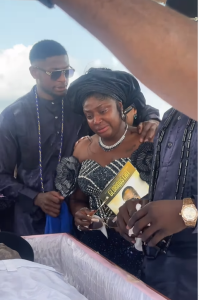 L’enterrement du défunt s’est tenu à Warri, dans l’État de Delta, au Nigeria. Des images et vidéos largement relayées sur les réseaux sociaux montrent une Lizzy Gold effondrée, en larmes devant le cercueil de son père. Soutenue par sa famille et ses proches, l’actrice n’a pas pu contenir sa douleur, offrant une scène qui a profondément touché les internautes.